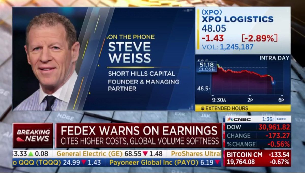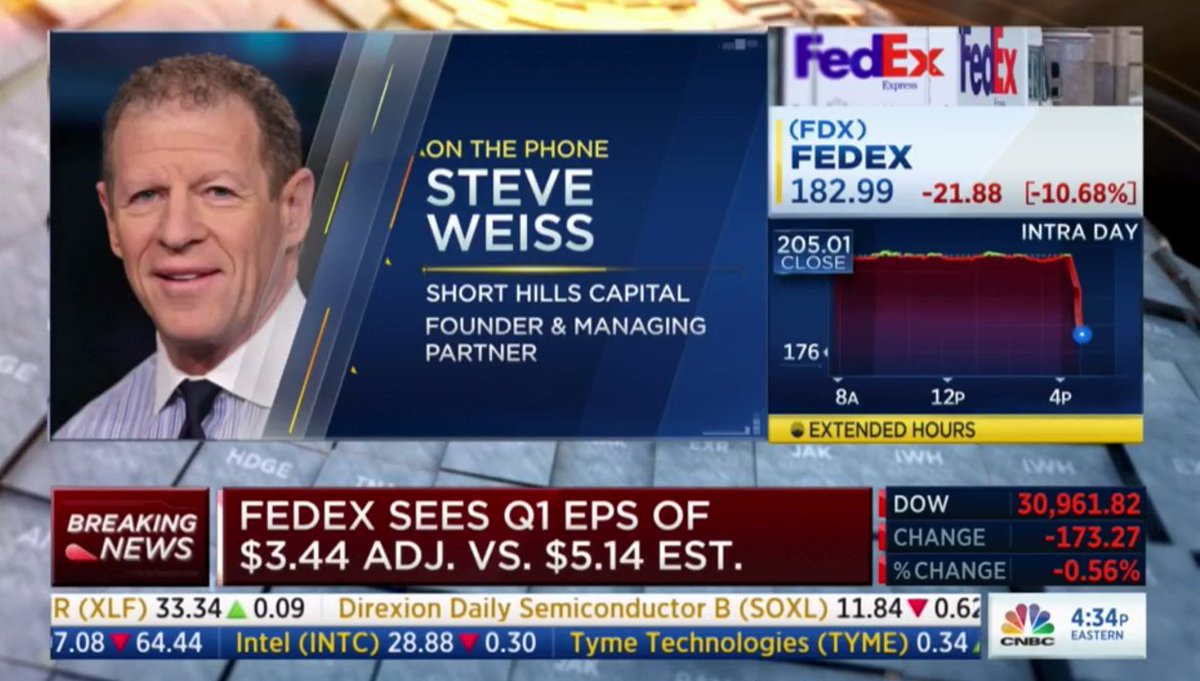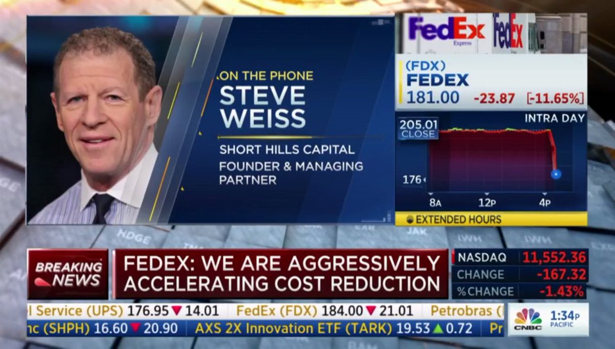 شركة فيدكس لنقل الطرود $FDX نعلن عن نتائج اسوأ من التوقعات بكثير، وتخفض من توقعات الارباح المستقبلية، وتحذر من انخفاض الطلب العالمي وارتفاع التكاليف، وانها متجهه لخفض التكاليف بقوة.. هذه اشارة مهمةلتبعات التضخم والركود الحاصل في الولايات المتحدة واجزاء كثيرة من العالم