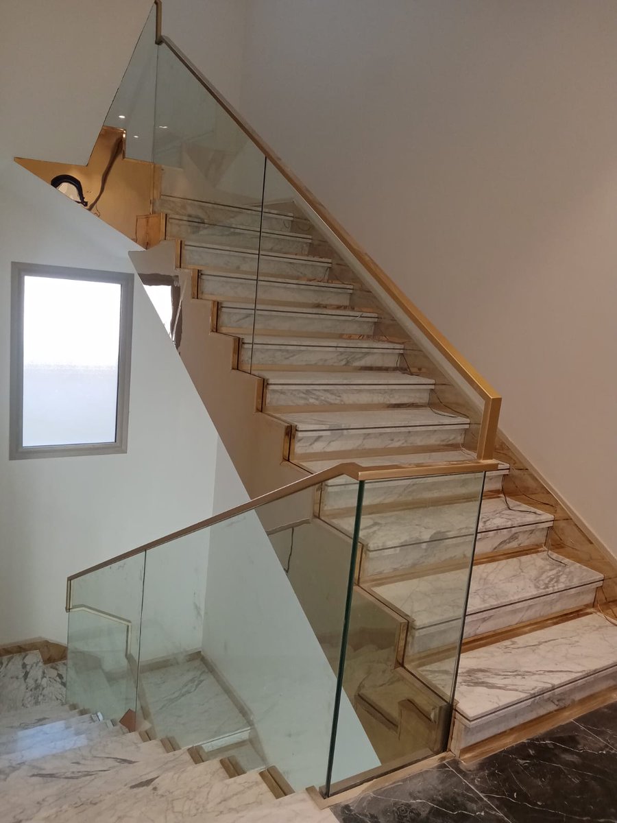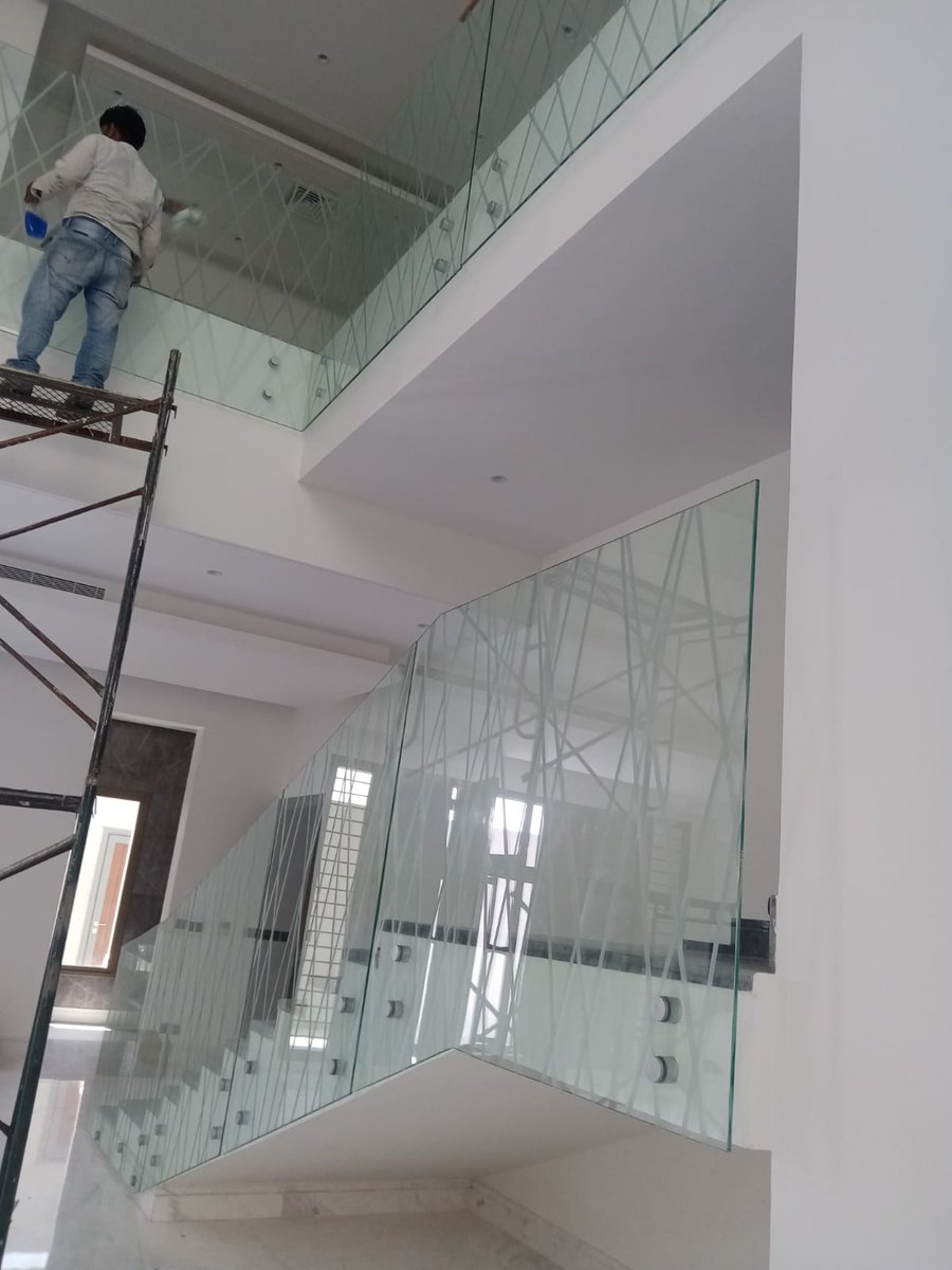 أ-انواع درابزين الدرج من الزجاج سيكوريت التي تنفذها مؤسسة تادو للمقاولات في #الرياض : سماكة الزجاج يمكن أن تكون 8-10-12 ملم والألوان متوفرة بدرجات عديدة منها الشفاف والرمادي الفاتح والأسود.