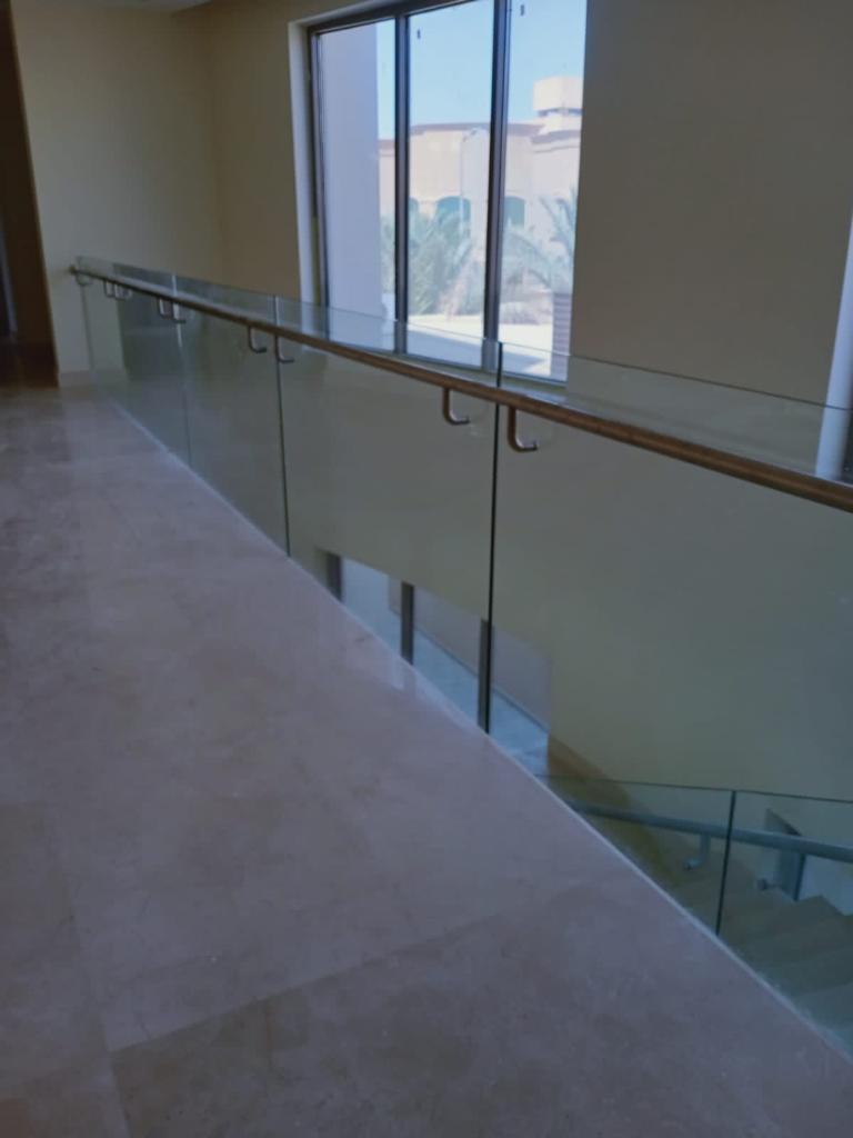 1- درابزين زجاج سيكوريت سادة بدون مقبض