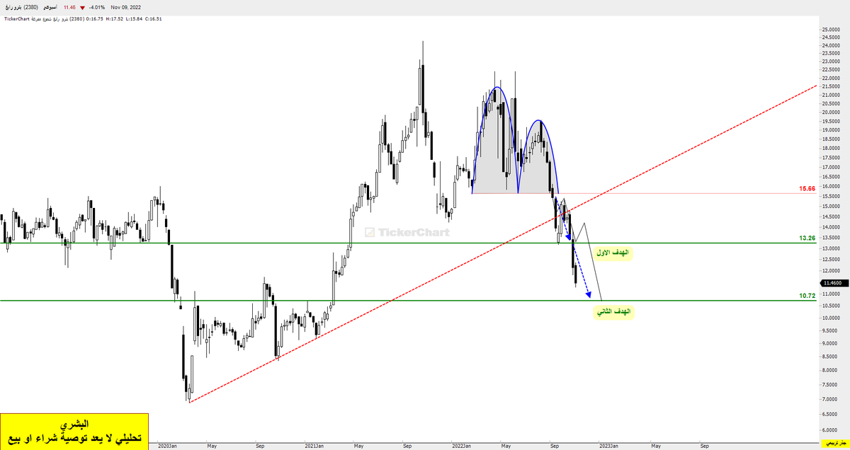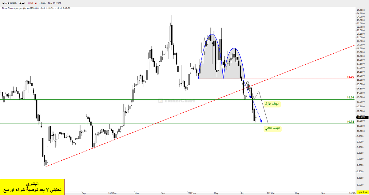 * لا انصح بدخول السهم الا بعد وضوح إشارات الارتداد فقد تمتد الموجة