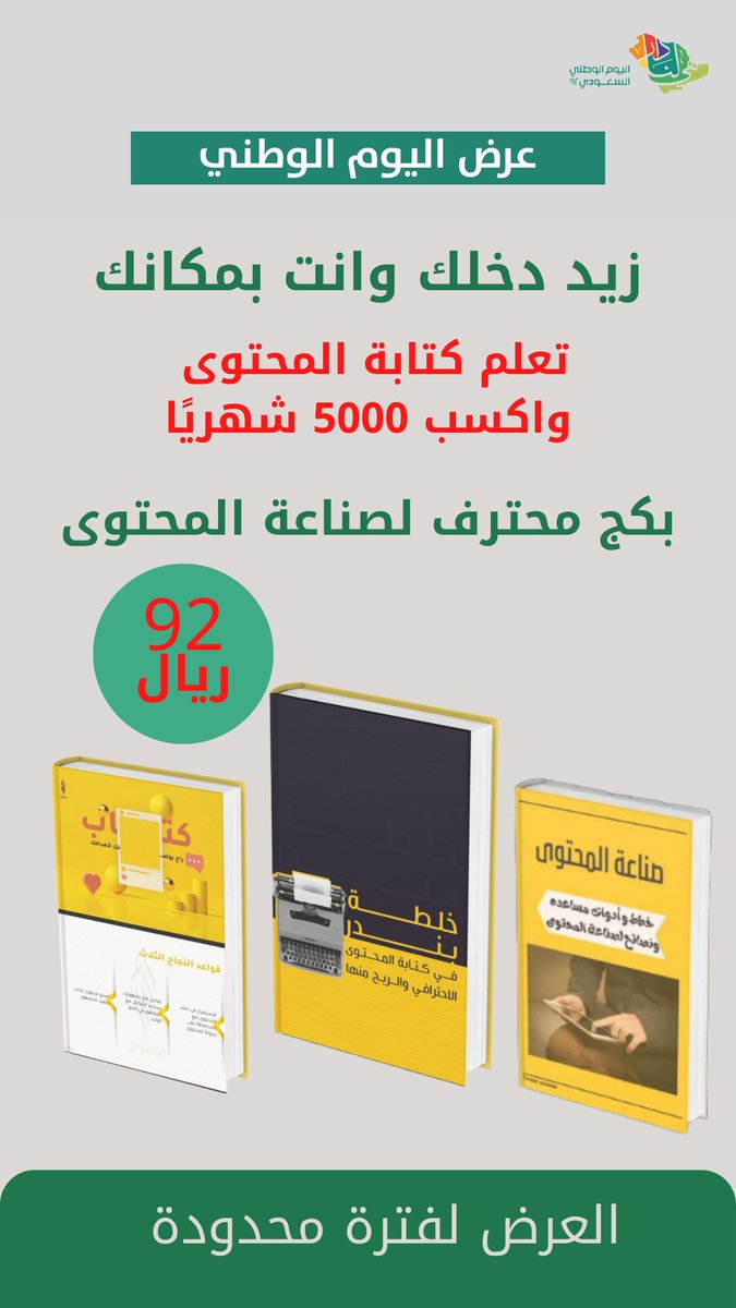 وعشان كذا مقدمين لك عرض على بكج محترف لصناعة المحتوى وفترة محدودة بيفيدك اذا كنت تبي تحولها إلى مصدر دخل وش يحتوي البكج :