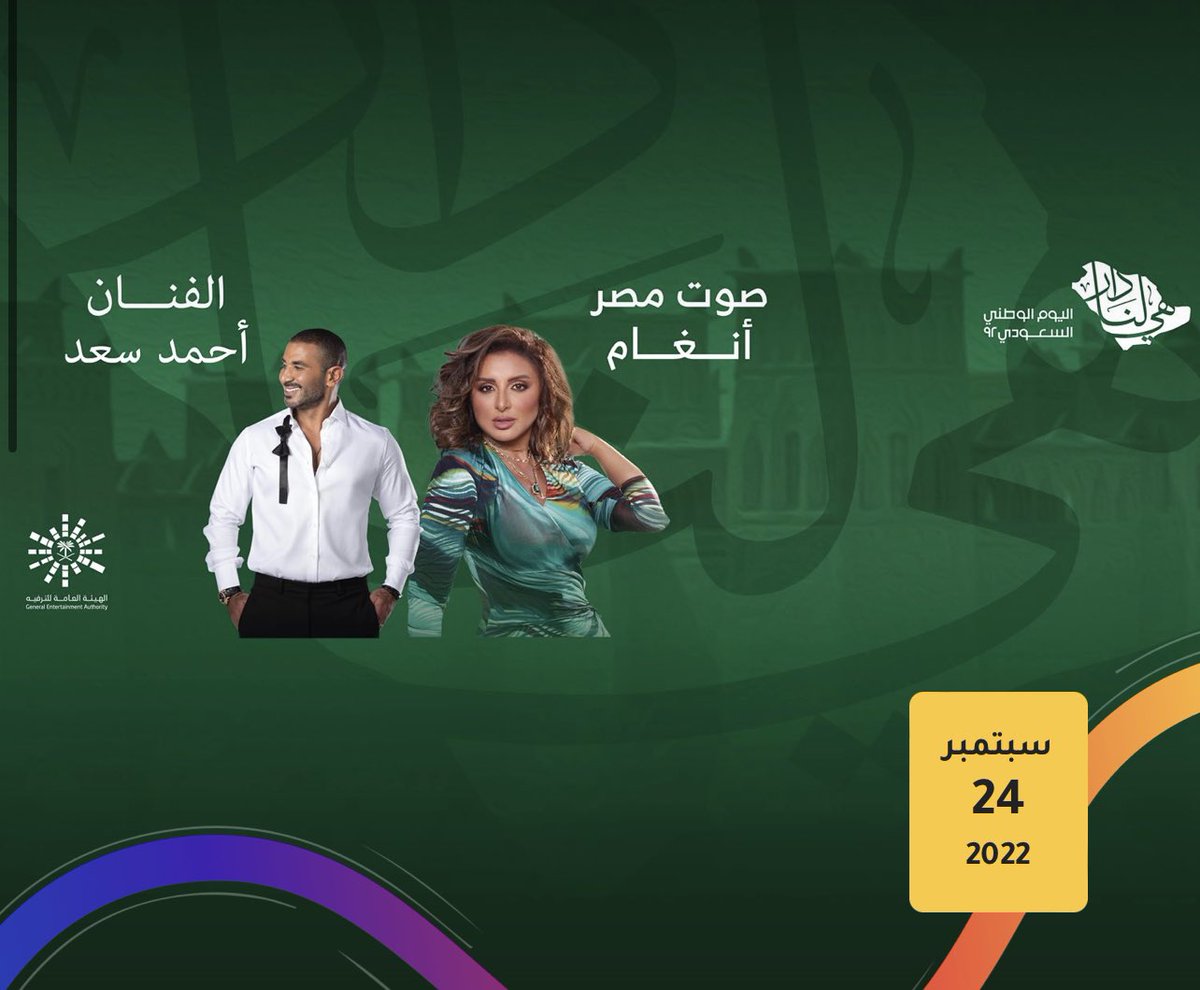 مظاهر الاحتفاء في #اليوم_الوطني_السعودي_92 ستشمل الفنون الشعبية والتشكيلية ومسرح الطفل، والجداريات والعروض الضوئية وثلاثية الأبعاد، بالإضافة لتزيين الطرق والميادين بالأعلام ونشر التهنئة والشعارات الوطنية على الشاشات واللوحات الإعلانية.