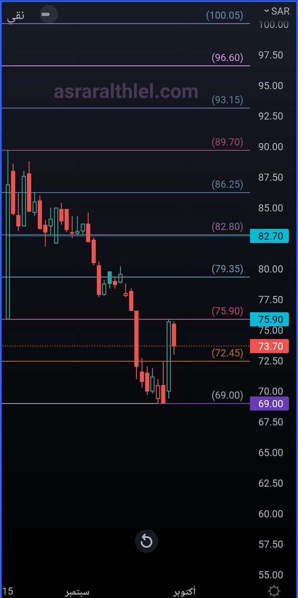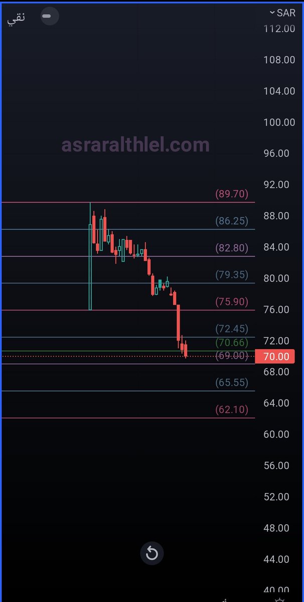 قد يتراجع ل 69 بذيل شمعه ويرتد منه ليغلق أعلى الدعم