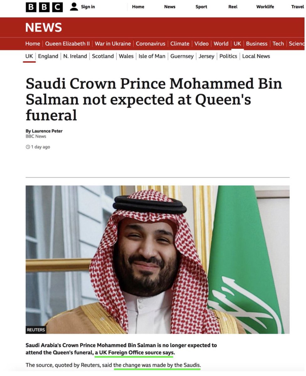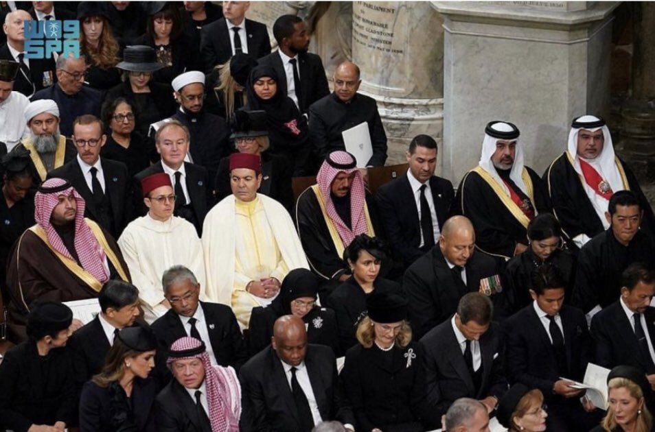 ٦- ومؤديا واجب العزاء لبريطانيا في وفاة ملكتها دون حضور الطقوس التي سبقت ذلك يوم الاحد.