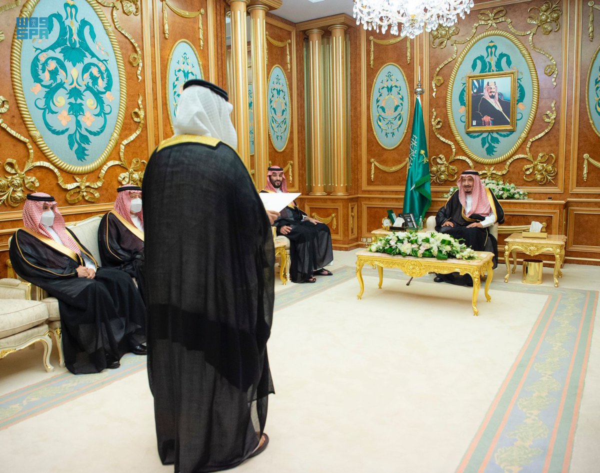 #خادم_الحرمين_الشريفين يتسلم بحضور سمو #ولي_العهد أوراق اعتماد سفراء عدد من الدول الشقيقة والصديقة المعينين لدى المملكة.