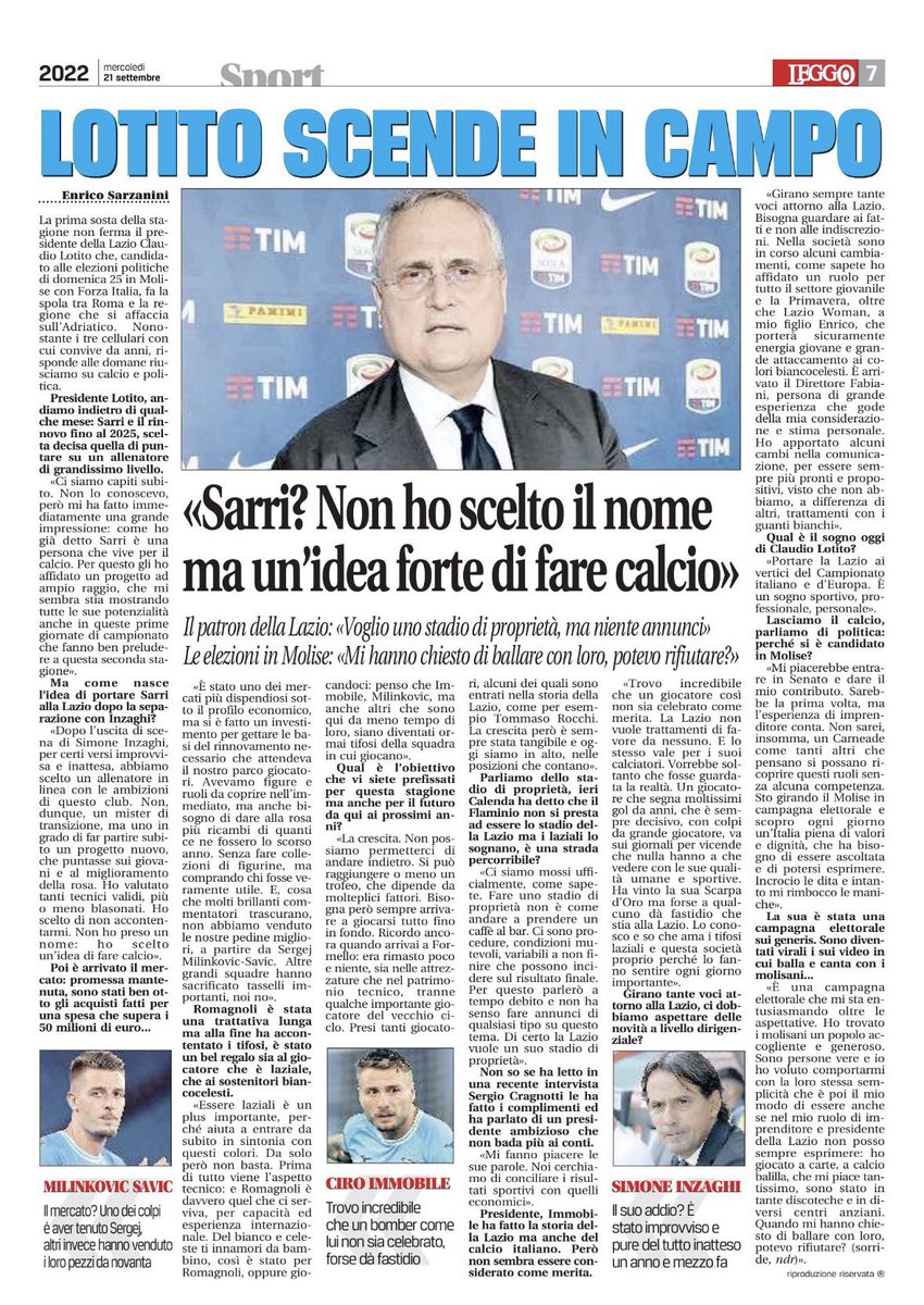 لوتيتو : بعد ان غادر سيموني انزاغي بشكل مفاجئ وغير متوقع اخترنا مدرب يتماشى مع طموحات #لاتسيو ولذلك لم نرد مدرباً انتقالياً ولكن اردنا مدرب قادر على بدء مشروع جديد فوراً ويركز على الشباب وتحسين الفريق …