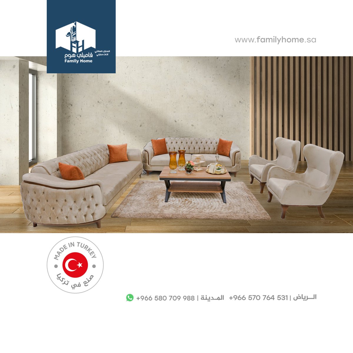 طقم جلوس رائع ومريح بألوان هادئة وراقية من فاميلي هوم مع عروض مميزة بمناسبة العيد الوطني