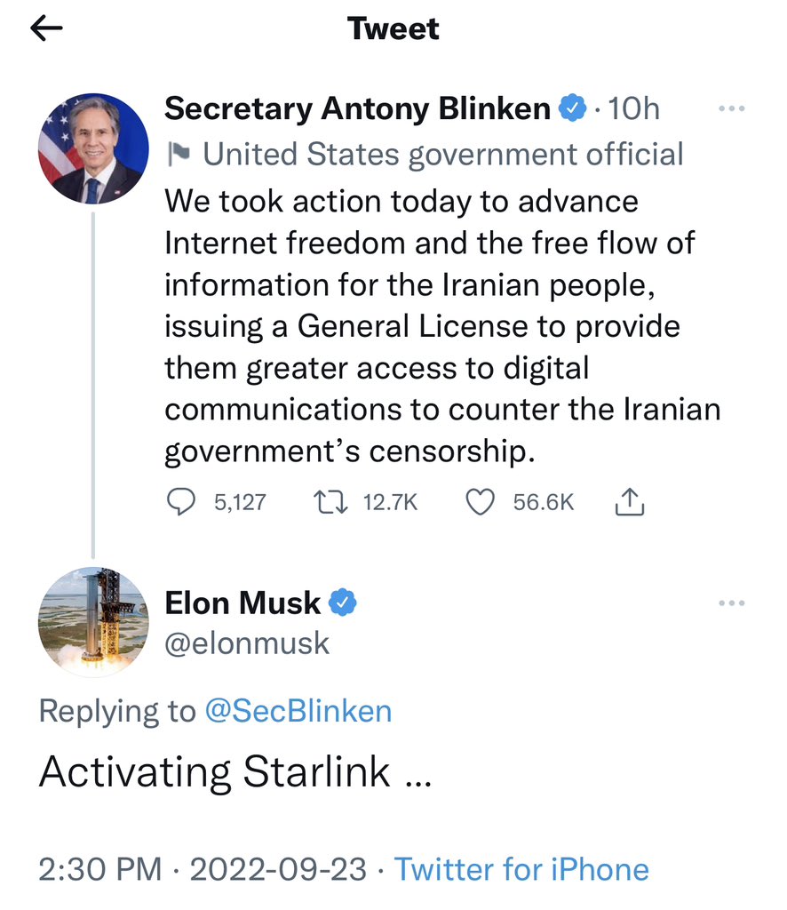 سوف يحصل الإيرانيون على انترنت إيلون ماسك وربما غيره.