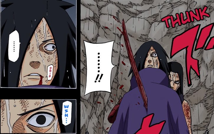 2⃣وقوف حكيم المسارات الستة بوجه مادارا، شيئ غريب فلماذا قد يقف من كتب نص اللوح الحجري في وجه من يحاول تنفيذ ما فيه؟فذلك يعد تناقض صريح، ولكن بعدما اتضح ان الحجر تم تزويره يتبين ان وقوف هاغورومو في وجه مادارا منطقي تماما، وهذه النقطة تبين لك ان حلم مادارا غير قَويم منذ البداية.