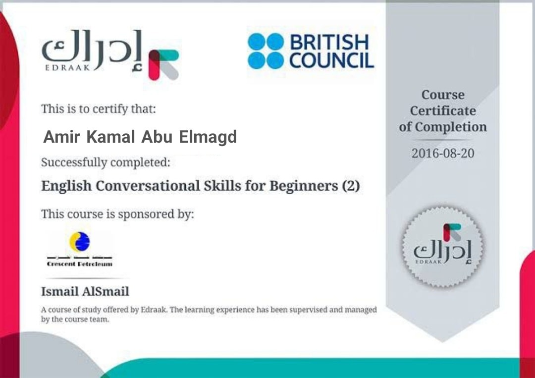 1- شهادة من المجلس الثقافي البريطاني مع خيار تحميل الشهادة لأي موقع توظيف أو تحميلها للـ cv