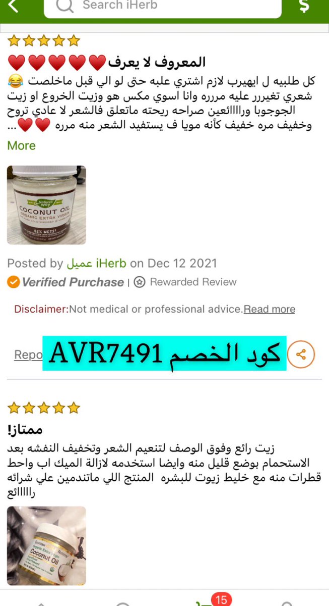 1- زيت جوز الهند العضوي يرطبب و يطول الشعر من قلبب 😍🤍