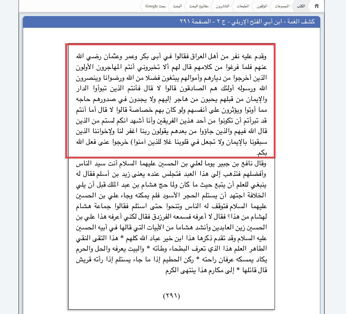 🔸في البدايه يجب معرفة موقف آل البيت من الصحابه من كتب الشيعة انفسهم