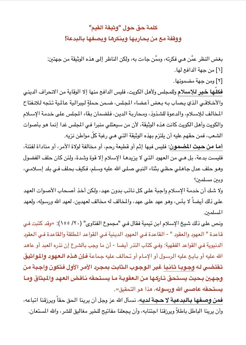 تأصيل جميل وصلني لمن يدعي بدعية #وثيقة_القيم دون دليل على دعواه