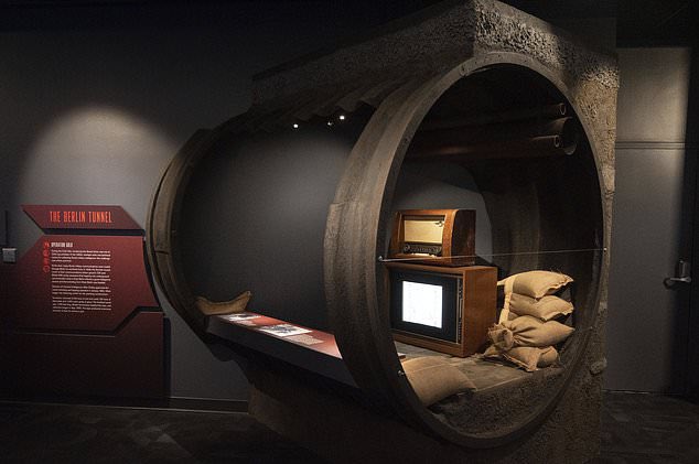 -صورة لنائبة مدير المتحف جانيل نيزيس بالقرب من أدوات سرية كانت تستخدم في الحرب الباردة مع الاتحاد السوفييت