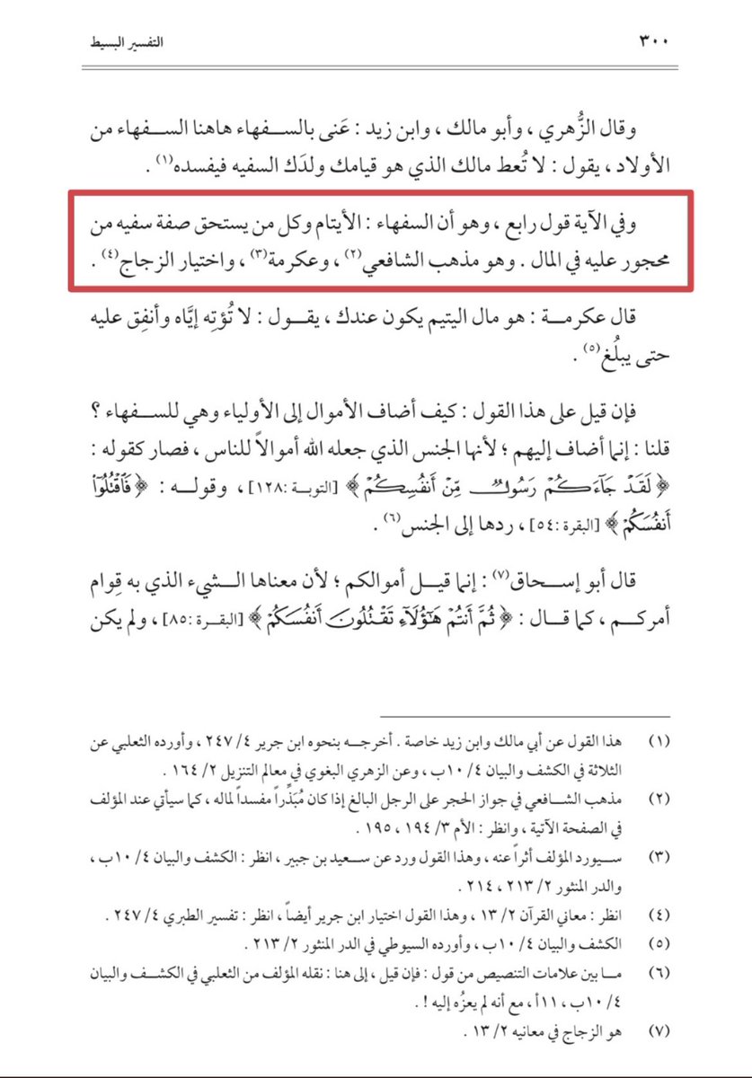 القول الرابع أن المراد بالسـ،فهاء كل من لم يكن له عقل يفي بحفظ المال ويدخل فيه كل من كان موصوفا بهذه الصفة وهذا القول أولى لأن التخصيص بغير دليل لا يجوز