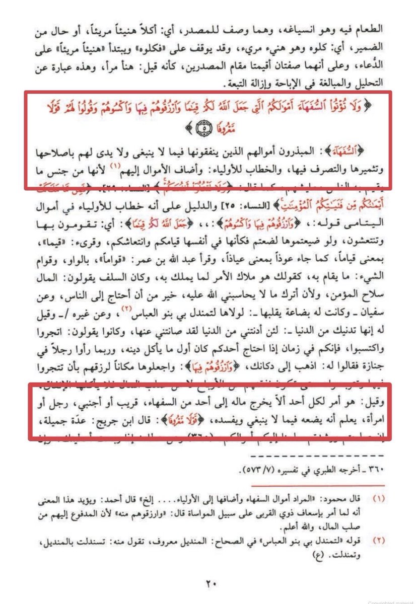 السفهـ،اء المبذرين من الرجال والنساء والصبيان واختلف أهل العلم في هؤلاء السـ،فهاء من هم فقال سعيد هم اليتامى قال النحاس وهذا من أحسن ما قيل وقال مالك هم صغار السن لا تعطوهم أموالكم وقال مجاهد هم النساء قال النحاس وغيره هذا القول خاطئ إنما تقول العرب سفـ،ايه أو سفـ،يهات
