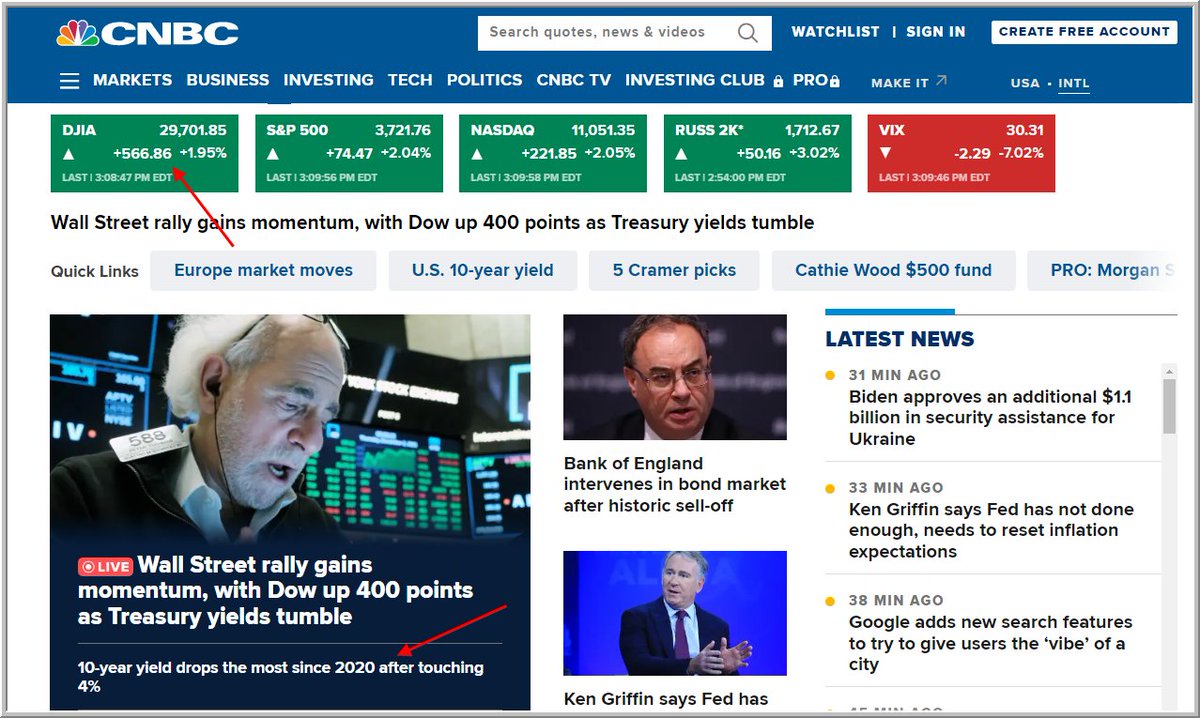 التغير حدث بفعل 3 نقاط، ذكرنا ايضا انها مطلوبة للارتداد المؤقت، هي: ارتفاع النفط، وهبوط عائد سندات العشر سنوات، وتراجع الدولار، وجميعها تحققت اليوم وهو ما أدى الى سرعة التحول وارتفاع 600 نقطة لداوجونز,, عائد 10 سنوات يتراجع 6.5%، النفط ارتفاع 3.5%، مؤشر الدولار يتراجع 1.3%