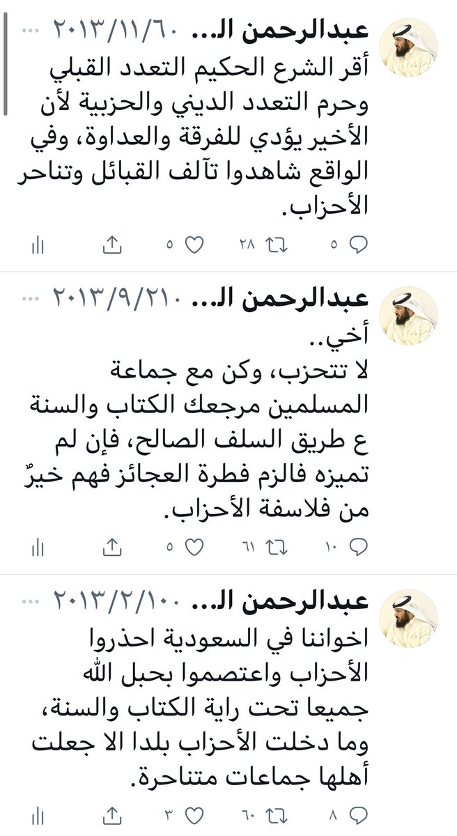 وأقول: كتاباتي في فضح الخوارج بجميع تنظيماتهم واضحة للعيان بفضل الله وحده، وكتبت في المبتدعة سلاسل تغريدات يتعدى مجموعها200 تغريدة
