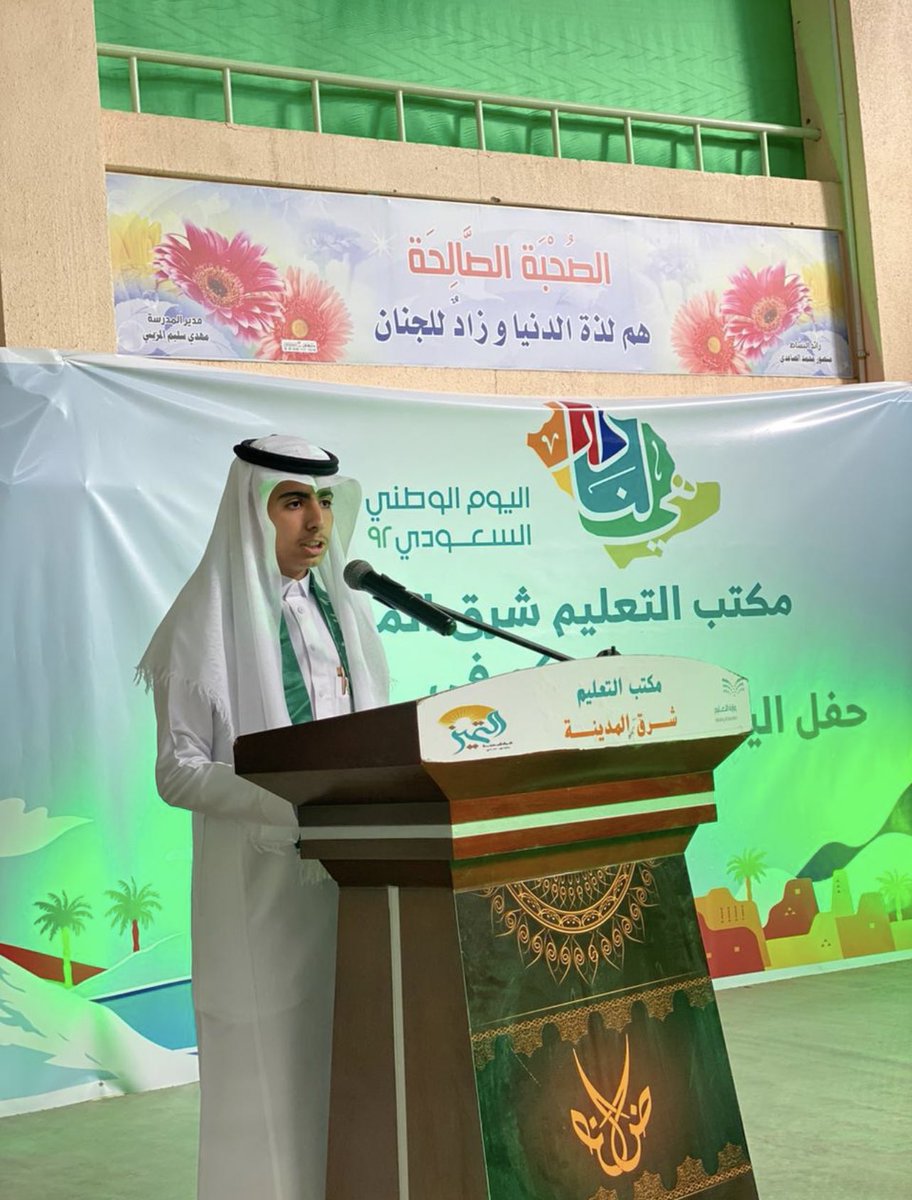 رعى مساعد مدير عام #تعليم_المدينة_المنورة للشؤون التعليمية الدكتور/خالد الوسيدي حفل مكتب تعليم شرق المدينة بمدرسة قيس بن سعد الأنصاري,بمناسبة #اليوم_الوطني_السعودي_92 تحت شعار #هي_لنا_دار بحضور مدير مكتب تعليم شرق المدينة أ. محمد المطيري و مدير إدارة النشاط الطلابي أ .أديب شاهين