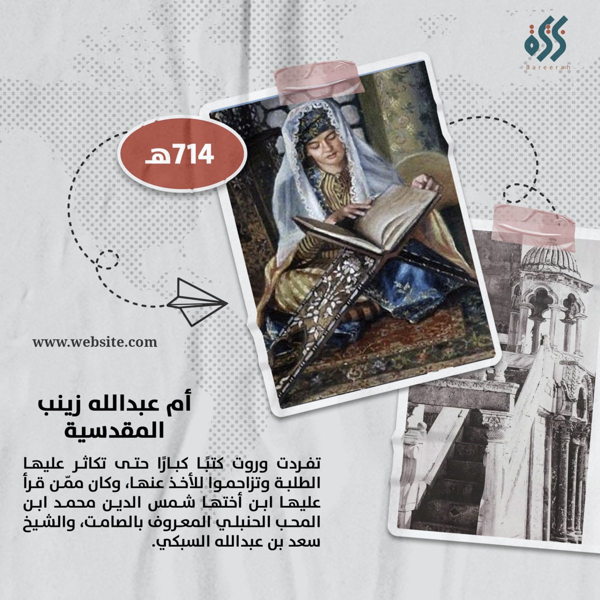 قال السخاوي يصف إحدى شيخاته: آمنةابنة الصدر أحمد بن البدر محمد بن زيد البعلية خالة قاضى الحنابلة ببعلبك، سمعت في جمادى الثانية سنة خمس وتسعين وسبعمائة على أبى الفرج عبد الرحمن بن محمد بن الزعبوب بعض صحيح البخارى وأجازت لنا، وكانت أصيلة خيرة، ماتت بعيد الستين تقريبا رحمها الله.