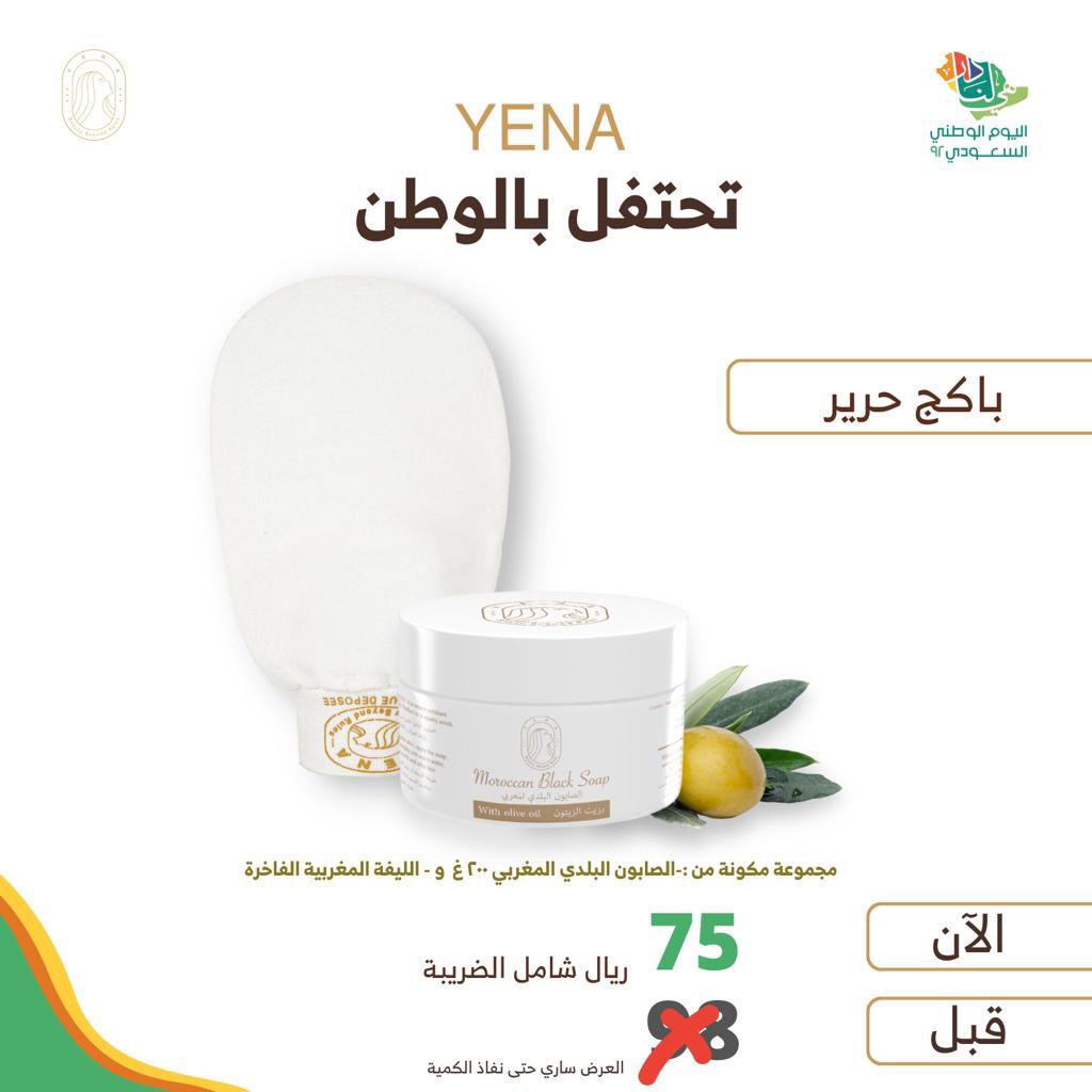 بعد الضجة اللي احدثتها منىٌجات YENA مسوين لكم عىروض اليوم الوطني وعندهم منىّجات كثيرة للجسم والشعر والوجه صابون وليفة مغربية وزيت الاركان .