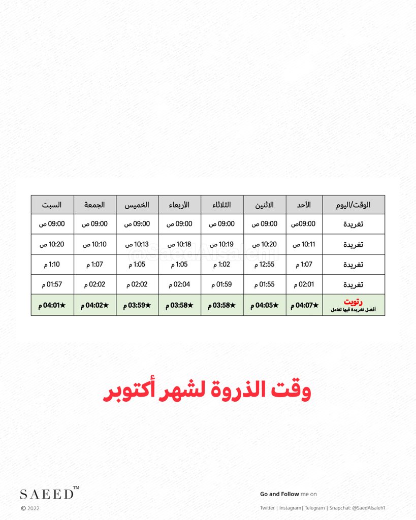 🔘 وقت الذروة لشهر أكتوبر الجاي 🔥