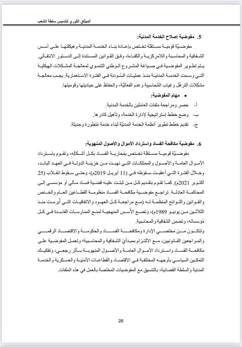 #عنقريب_نيوز | اصدرت اللجنة الفنية المشتركة لتوحيد المواثيق النسخة الاولية ل #الميثاق_الثوري_لتأسيس_سلطة_الشعب