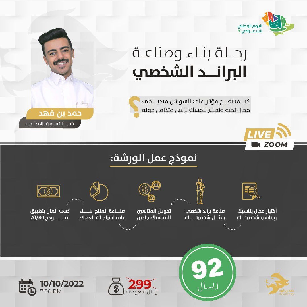 إذا حاب تحجز مكانك في الرحلة استخدم كود اليوم الوطني وهو 200 وراح تصير سعر الورشة 92 ريال 🚀