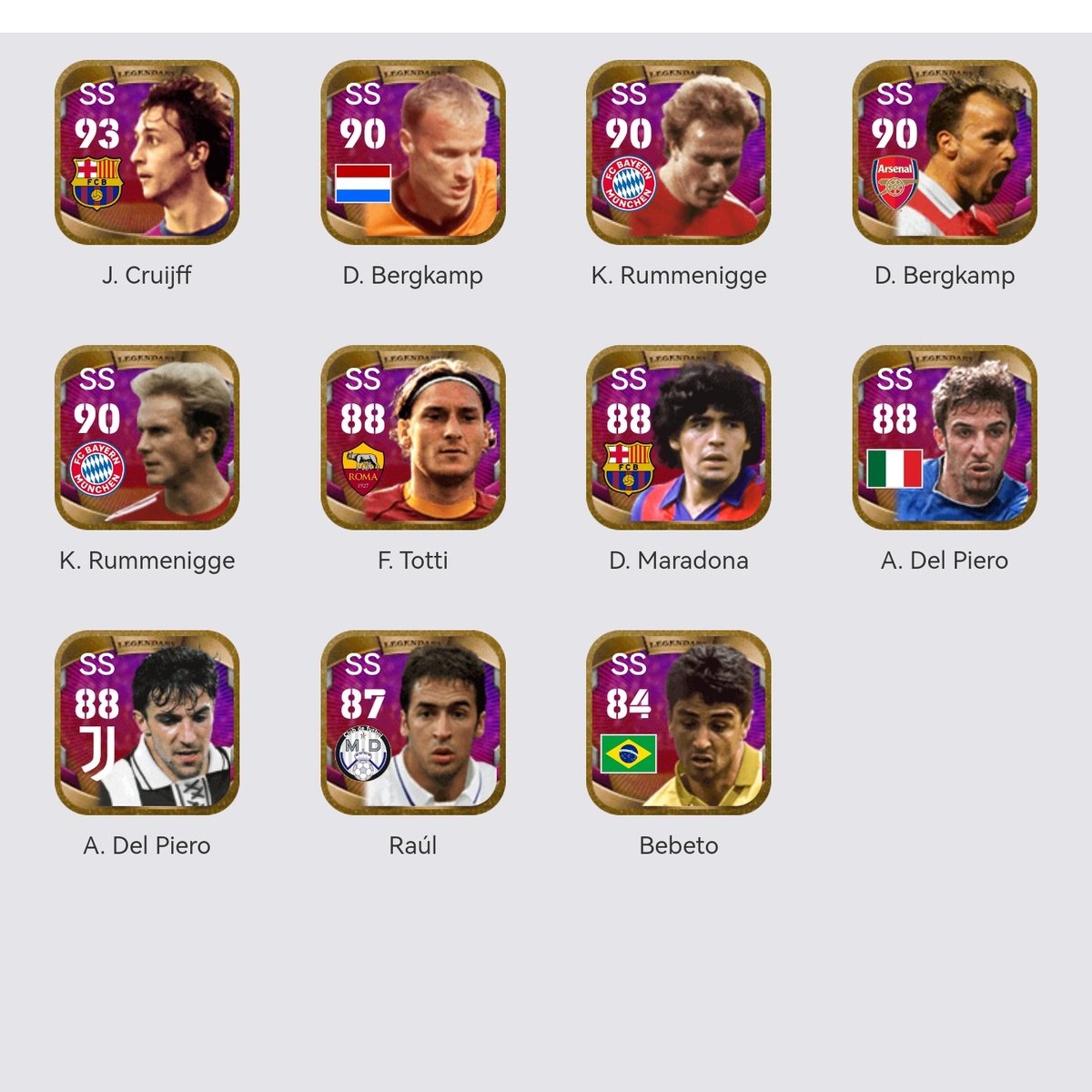 تحت هذه التغريدة، ثريد يحتوي جميع الكروت الأسطورية الموجودة في قاعدة بيانات إيه فوتبول ٢٠٢٣