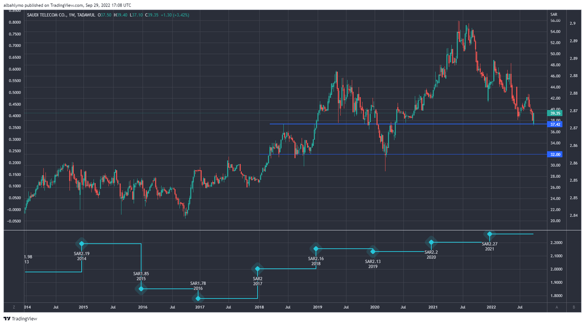 بعد عودة الربحية, السهم مرشح للعوده لمناطق ال 90 و ال 100 بإذن الله, و في حال عادة التوزيعات مثل السابق (ما اتوقع قبل 2024) راح يكون العائد السنوي 7% تقريبا