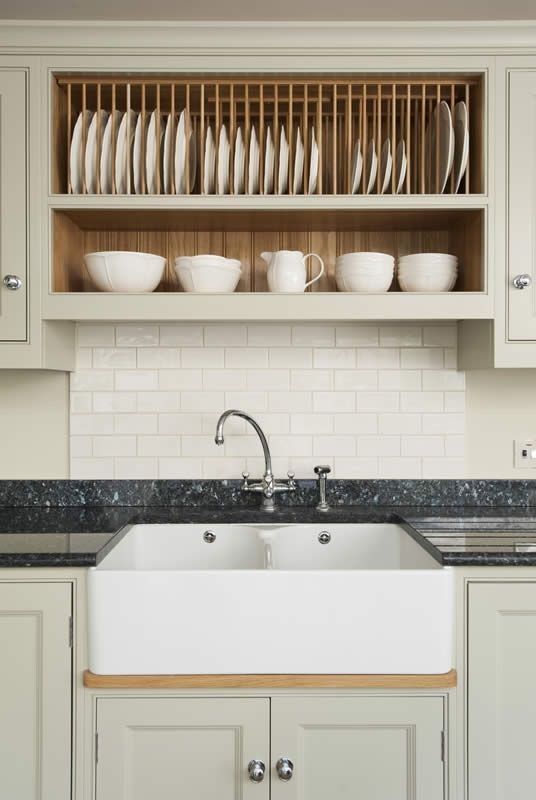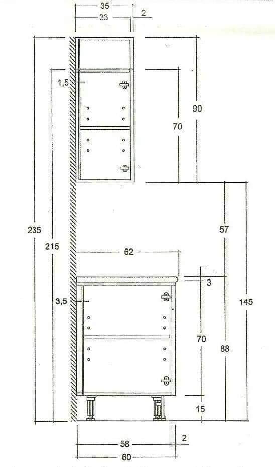 - لتجنب تسرب المياه من الحوض إلى الخزائن أسفلها، يجب أن يبرز حرف السطح فوق الوحدات.