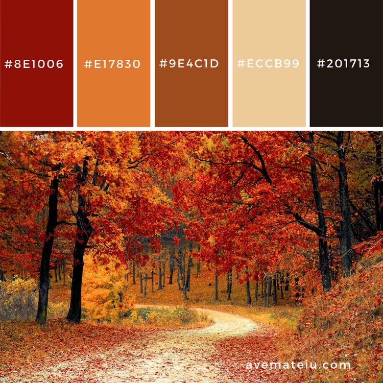 ألوان الخريف تميل للالوان الدافئة مثل البرتقالي درجات الاصفر الغامقة ودرجات البني 👌🏻