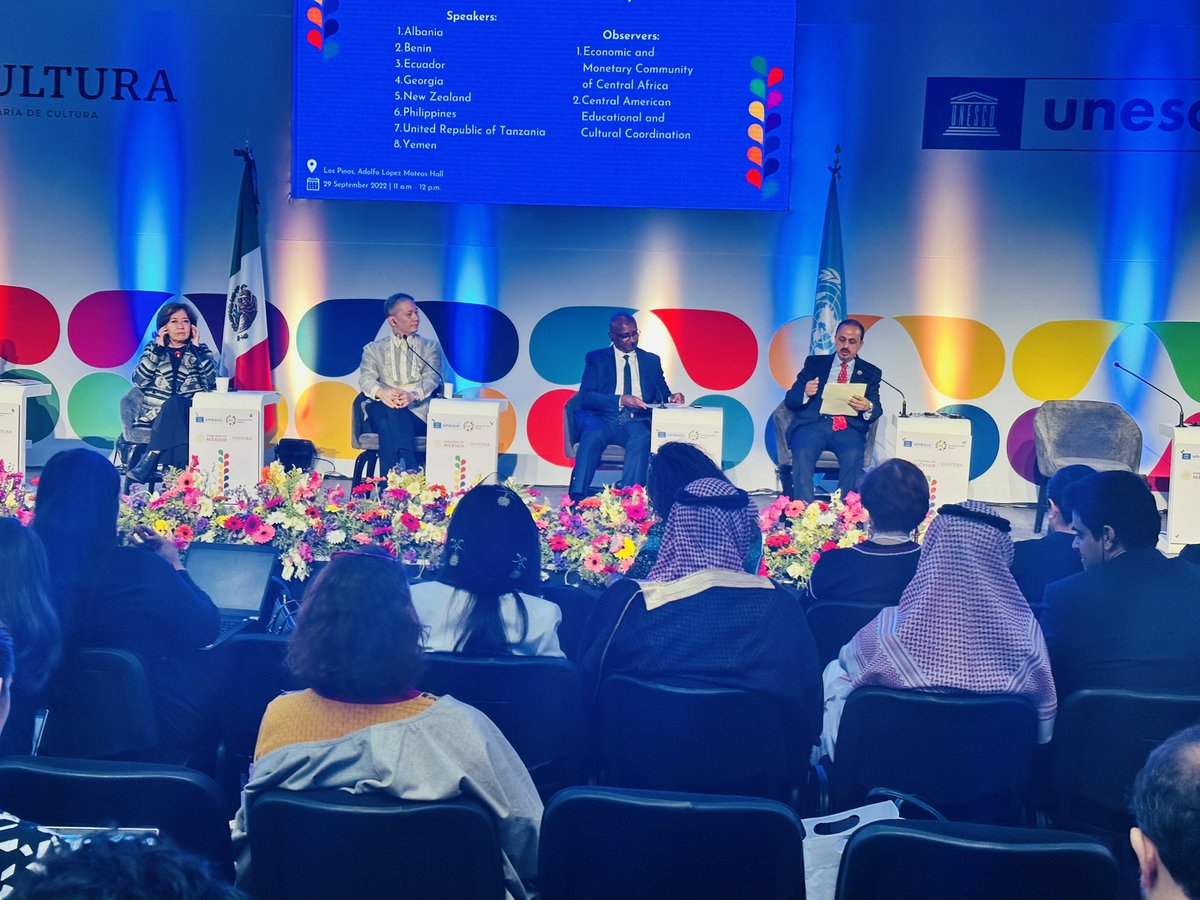 1-تشرفت اليوم بالمشاركة في مؤتمر اليونسكو العالمي حول السياسات الثقافية والتنمية المستدامة، MONDIACULT 2022 مونديال كلت، والقاء كلمة عبرت فيها عن خالص تقديري نيابة عن حكومة الجمهورية اليمنية، لحكومة الولايات المتحدة المكسيكية على استضافة المؤتمر، وكذلك لمنظمة اليونسكو
