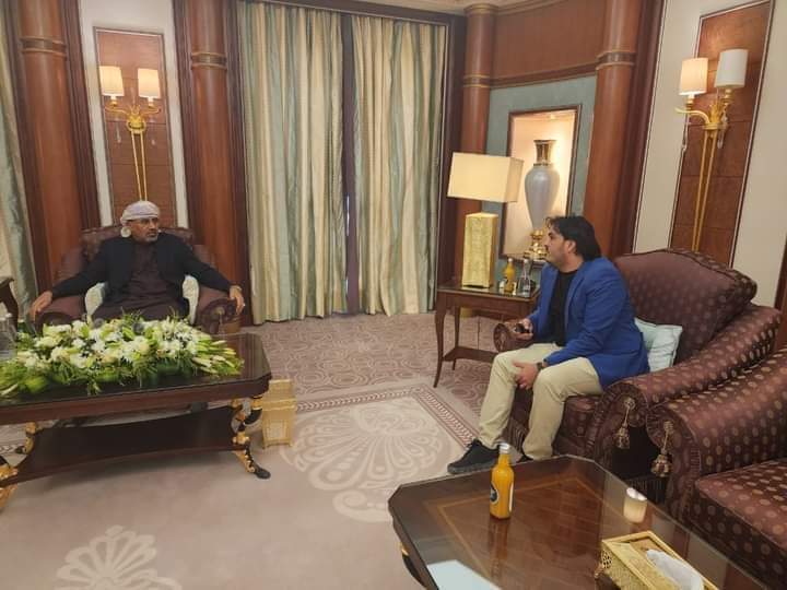 العاصمة السعودية الرياض بوزير الكهرباء والطاقة المهندس مانع بن يمين عقب توقيعه اتفاقية منحة المشتقات النفطية الخاصة بوقود الكهرباء بين البرنامج السعودي لإعادة الإعمار وحكومة المناصفة بقيمة إجمالية تبلغ ٢٠٠ مليون دولار أمريكي وأكد الرئيس القائد أن منحة المشتقات النفطية المقدمة