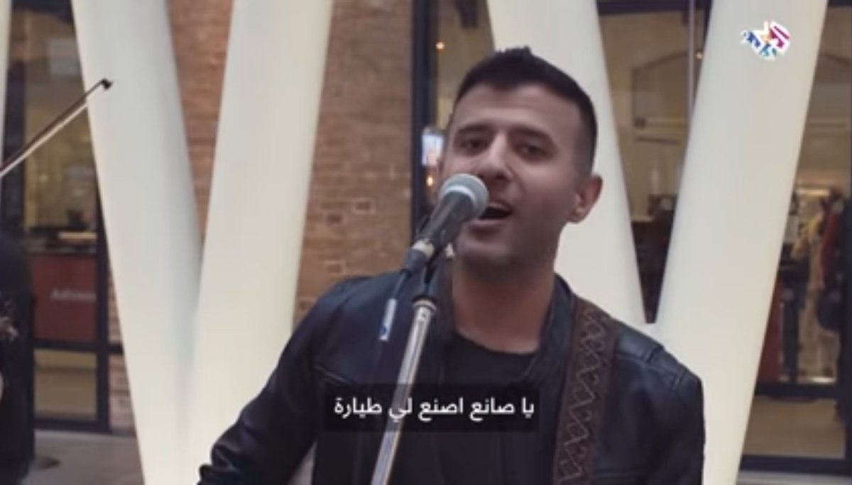 والعراقي نواف علي في غنائه أغنية حمدان الوطني الشهيرة "يا طير ياللي تنوح".