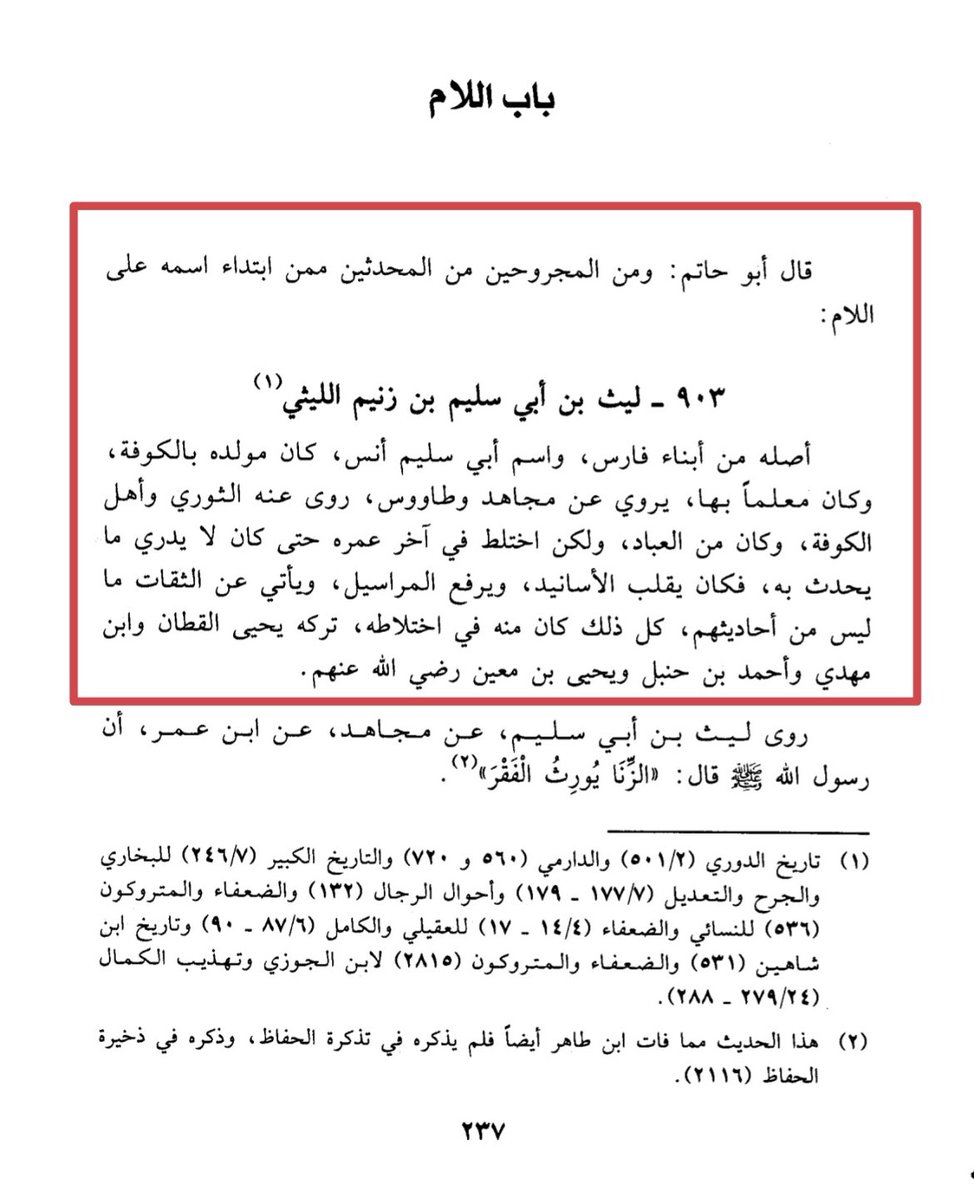 ابن حبان: ليث اختلط في آخر عمره حتى كان لا يدري ما يحدث به فكان يقلب الأسانيد ويرفع المراسيل ويأتي عن الثقات ما ليس من أحاديثهم