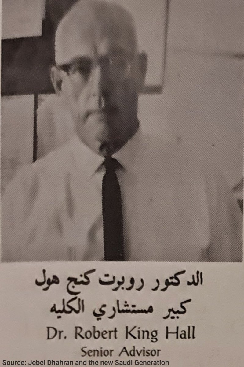 16》اقترح هاري سنايدر، مسؤول التعليم والتدريب في شركة #أرامكو، على د. صالح أمبه عميد الكلية الاستعانة بخبرات زميله السابق في الشركة الدكتور روبرت هول وتوظيفه مستشارا أول للكلية نظرا لخبرته الطويلة في مجال التعليم، ولذا سيساهم في وضع النظم التعليمية واختيار الأكاديميين.