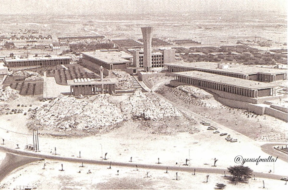 58》صورة شاملة لجامعة البترول والمعادن في الظهران، عام 1975م بعد اكتمال المراحل الثلاث لإنشاء الحرم الجامعي.