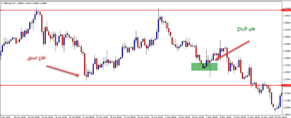 ملاحظة* ما سبق مثال على صفقات البيع يمكنك تطبيق نفس القواعد ولكن في الاتجاه المعاكس عند القيام بصفقات شراء.