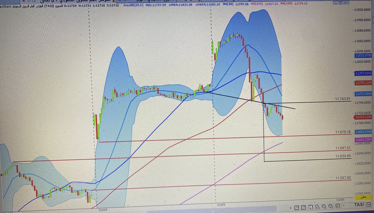 المؤشر العام الان يسجل الأدنى ١١٧١٦ بعد وصوله ١١٨٨٠ وبعد كسر نقطة التوازن ١١٧٤٨ يتم التركيز على النقاط التاليه ١١٦٧٦ تمثل أختراق الترند ربع سنوي المكسور / ١١٦٣٨ تمثل ٦١.٨٪ فيبو المخترقه / ١١٦١٥ وهي قمة آخر قاع RB