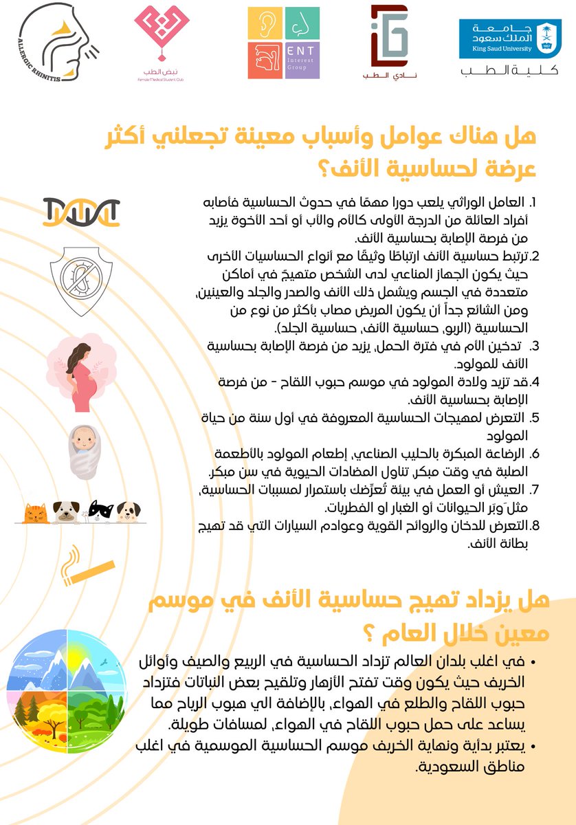 تحت إشراف البروفيسورة فاطمه العنزي @PAlanazy ، سنتحدث من خلال حملتنا عن حساسية الأنف، ابتداًء من اليوم ولمدة ٥ أيام.