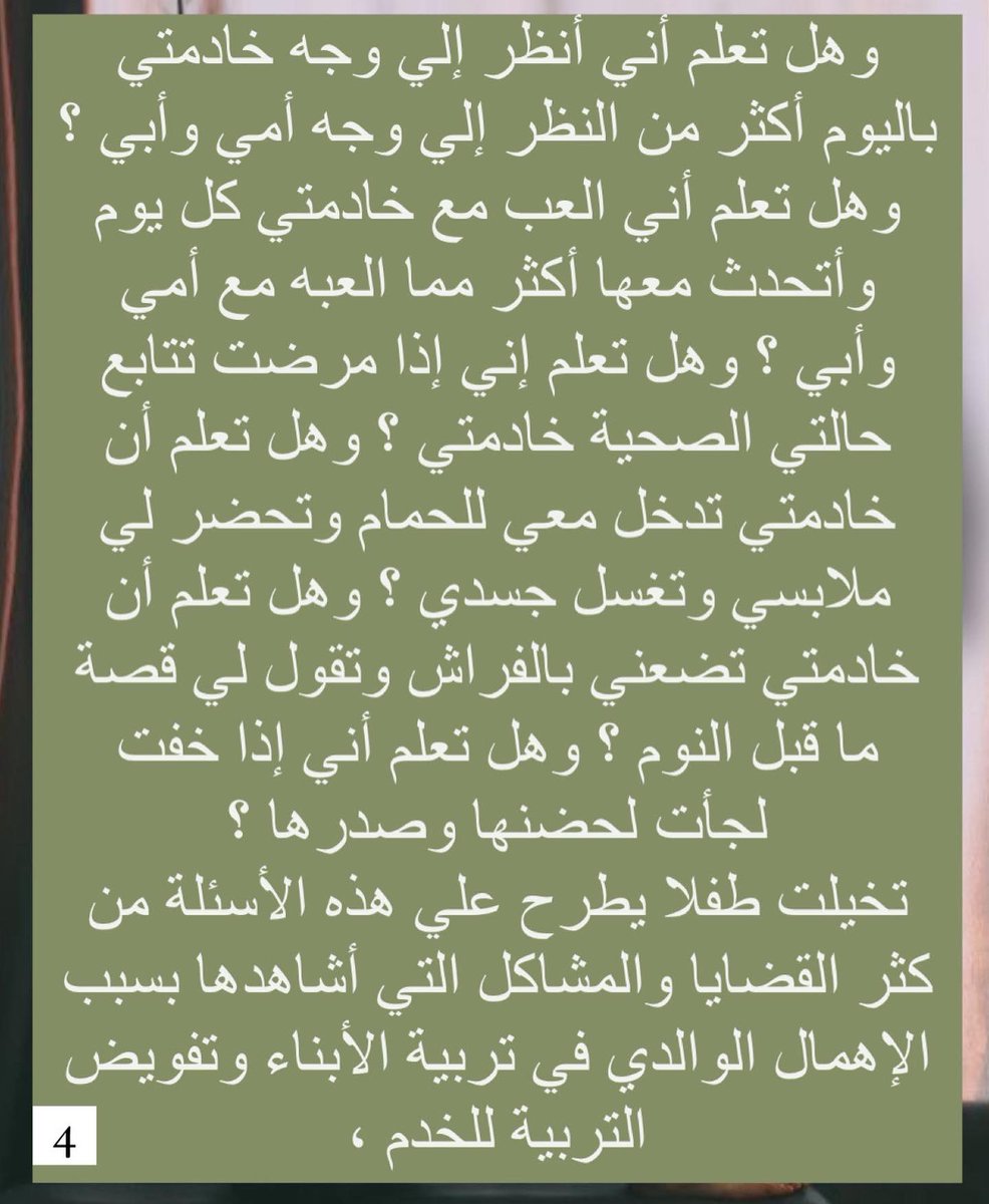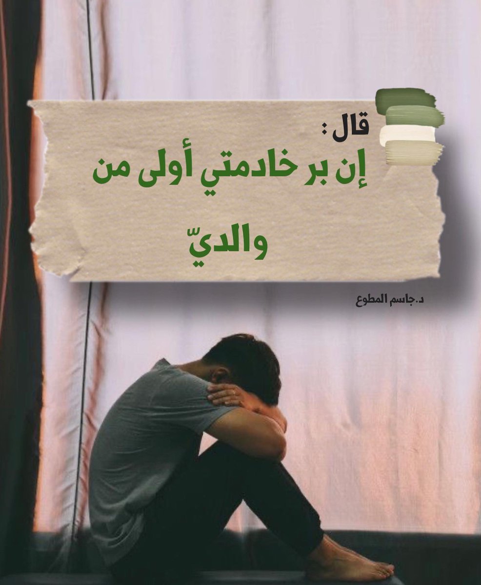 قال ان بر خادمتي أولى من والدي !! قال : إن خادمتى تجلس معي أكثر من والدتي فهل بر خادمتي مقدم علي بر والدتي ؟ وهل في بلادنا قانون يعاقب الأم أو الأب لو أهمل أو قصر في تربية ابنهما ؟