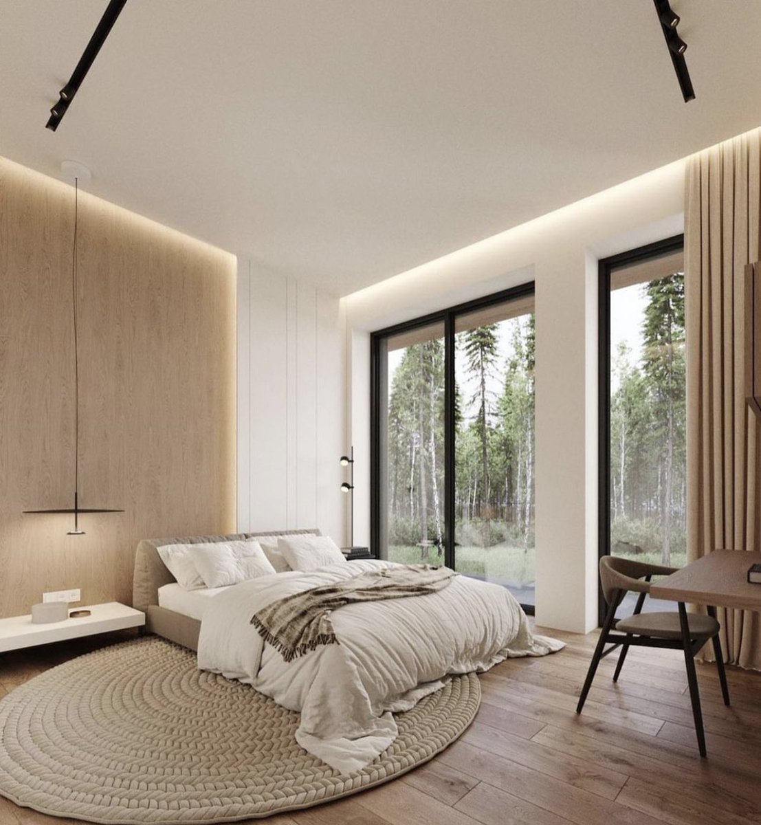 #غرفه لغرفة نوم فندقيه عدم وضع الاضاءه فوق السرير مباشره ،تجنب التفاصيل الكثيره ،عند توزيع الاثاث عدم وجود السرير مقابل للباب او النافذه ،السجاده تكون كبيره تحت السرير وجود غرفه ملابس ،و النوافذ الطوليه توحي بالاتساع وجمال الغرفه وتقليل السبوت لايت واستخدام الاناره المخفيه