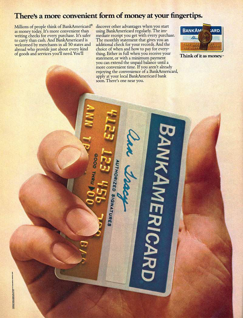 في الخمسينات، Bank of America كان بدأ يتوسع في تقديم قروض شخصية للزبائن. في نفس الوقت، كان في سوق مفتت جداً في كروت المدفوعات، ان كل محل (او كل صناعة، زي المطاعم و Diners Club) ليها كروت مشتريات خاصة بها.
