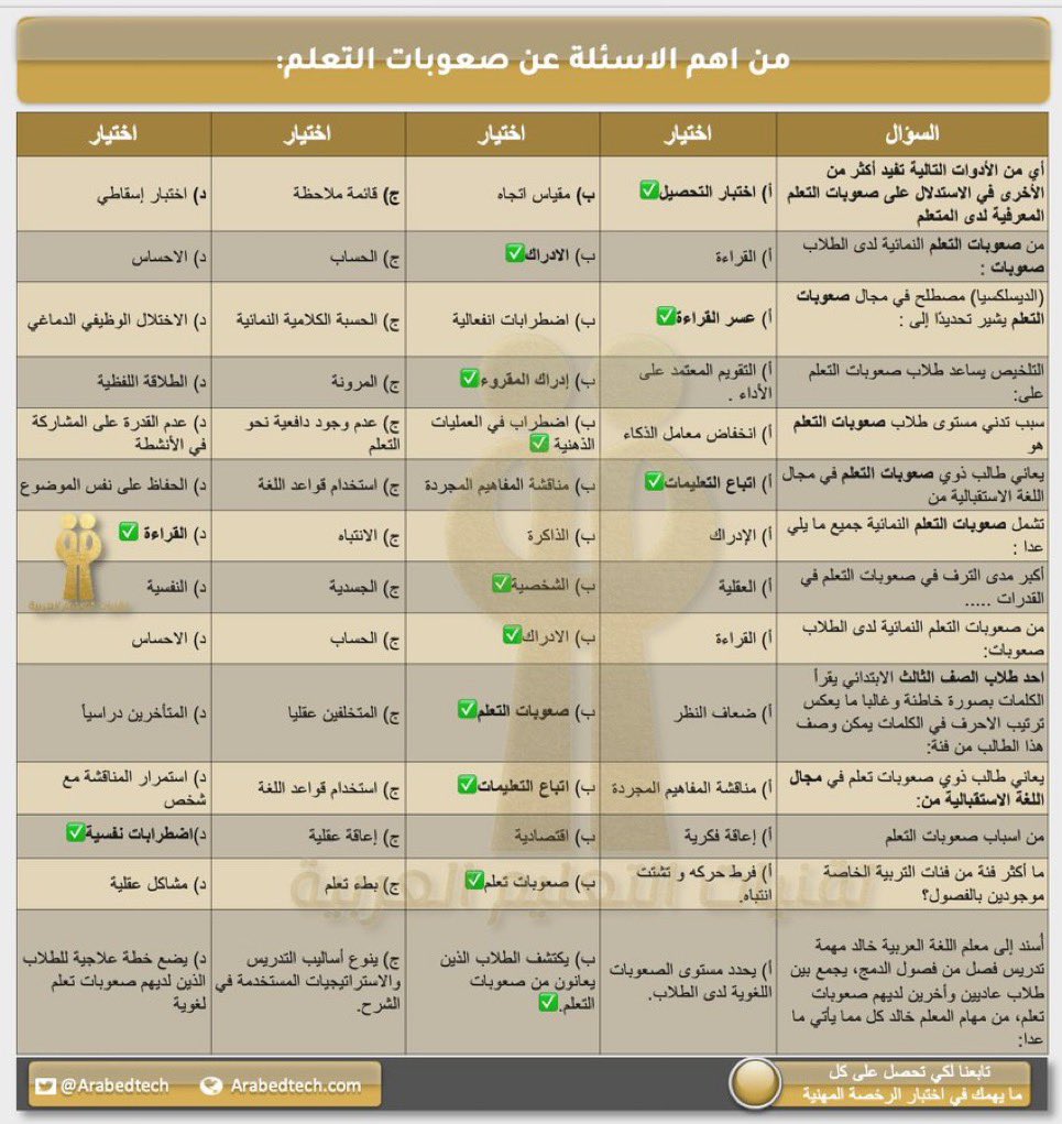 🔻ملاحظة: سنغرد بمفاتيح الإجابات فيما يتعلق بصعوبات التعلم