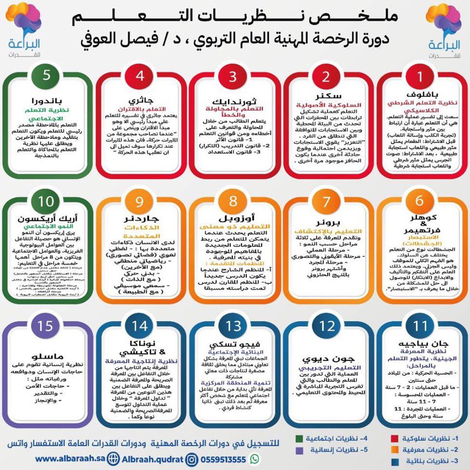 هنا ملخص مميز لنظريات التعلم ، مفيدة جداً في #الرخصة_المهنية_عام