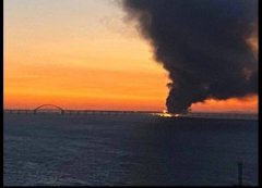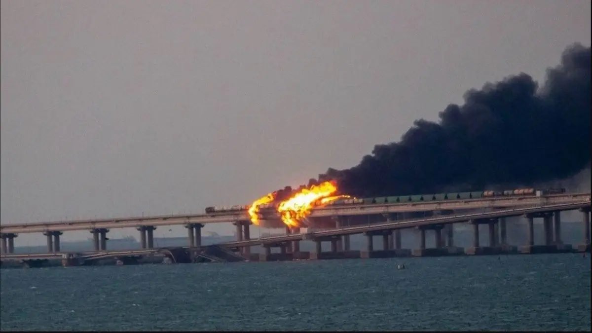 تعرض جسر "كيرتش" الذي يربط بين شبه جزيرة القرم وروسيا لتدمير عنيف من قبل شاحنة مفخخة ما أدى إلى اشتعال النيران في خزان وقود بقطار شحن يسير عبر الجسر