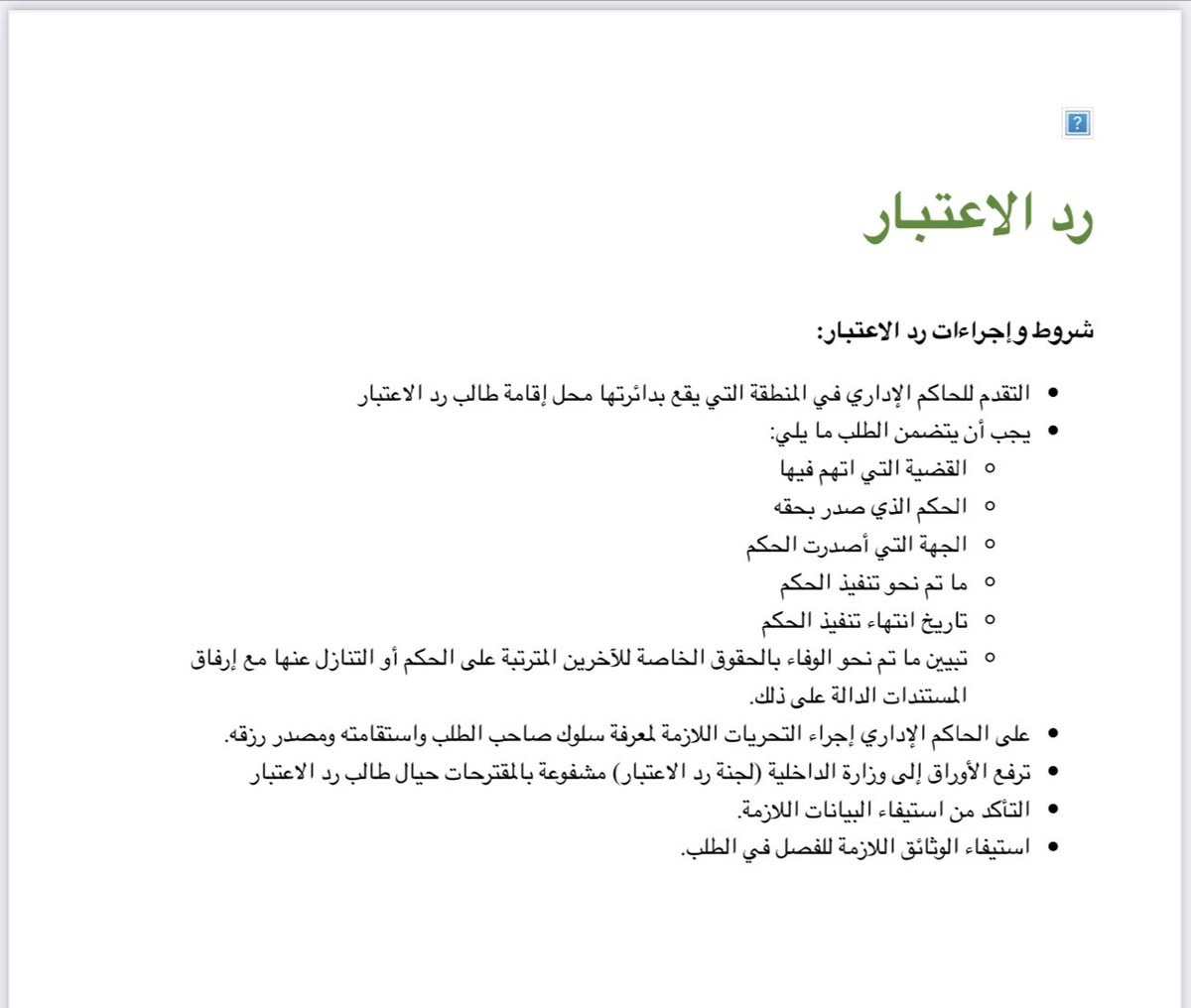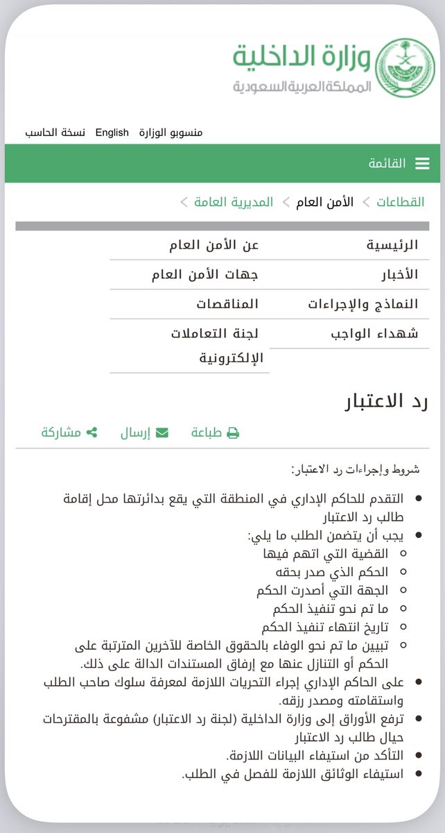 أولا: يتقدم باستدعاء لأمير المنطقة التابع لها يطلب فيها رد اعتباره