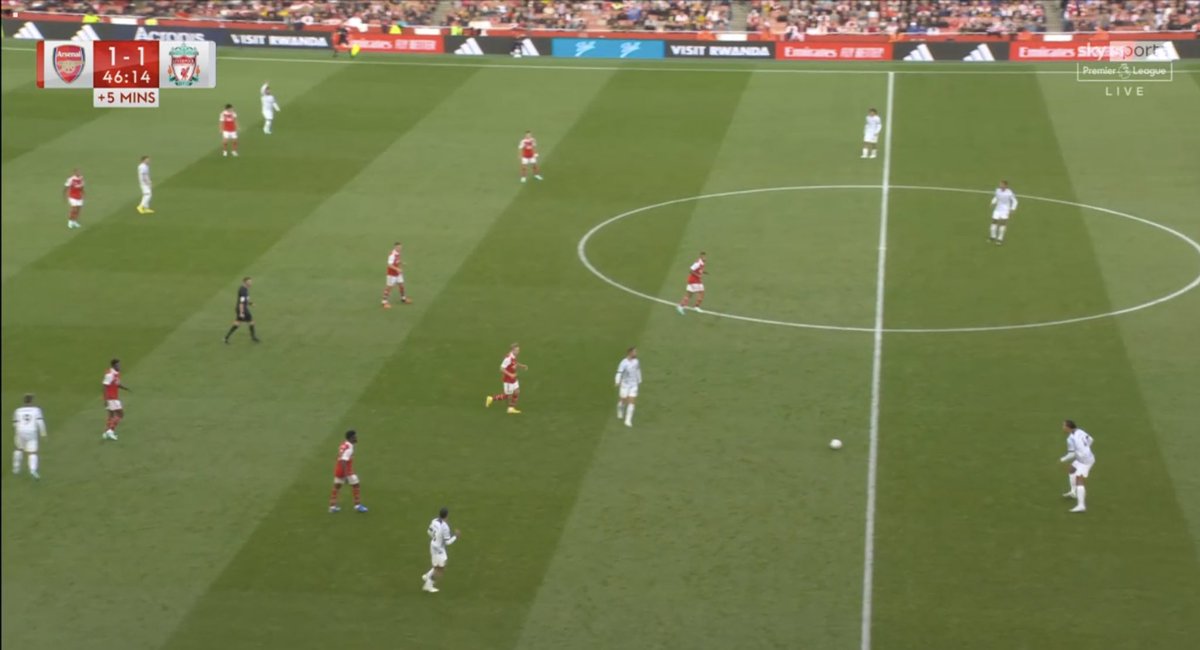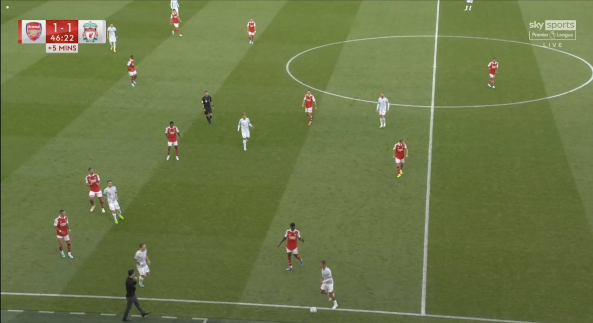 بعيدا عن الخطأ من غابرييل بالهدف الاول، لكن الاستمرارية باللعب بدفاع متقدم وتطبيق المصيدة ساعد كثيرا على نجاح الضغط بالمقدمة