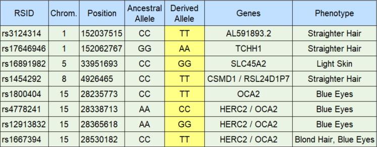 وقد تبين حملها لطفرات العيون الزرقاء والشعر الأشقر والشعر المستقيم